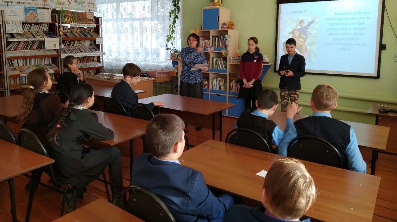 28 ноябрь көнне балалар китапханәсе хезмәткәре Нурия Гайнетдинова 1нче гимназиянең Ч.Т.Айтматов исемендәге 6б сыйныф укучылары өчен “Сиңа хокук турында” дип исемләнгән тематик сәгать үткәрде. Әңгәмә барышында ул бала хокуклары конвенциясенең статьялары белән таныштырды. Балалар үз хокукларыңны белергә кирәклеген, төрле хәлләрдә үзеңне ничек дөрес тотарга кирәкле турында белделәр, төрле уеннарда катнаштылар . Чара китапларга күзәтү белән тәмамланды.