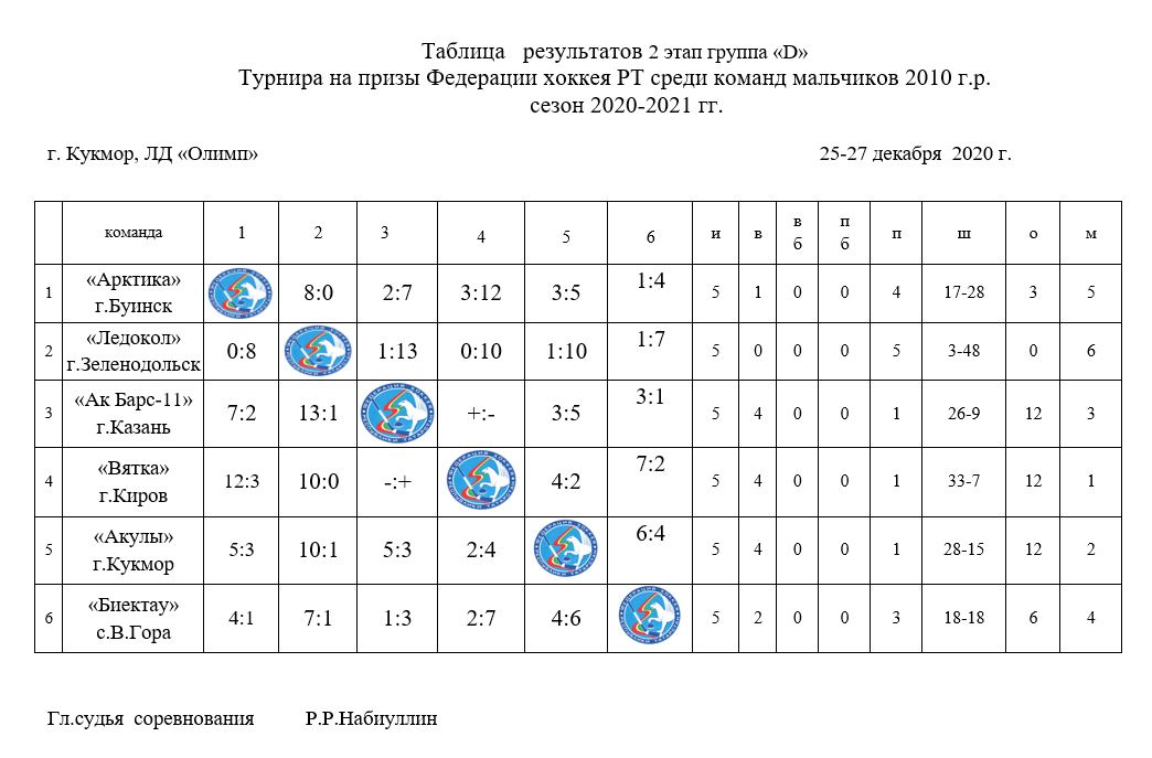2020 елның 25-27 декабрендә Буа «Арктика», Яшел Үзән «Ледокол», Казан «Ак Барс» , Кукмара «Акулы», Биектау «Биектау» , Киров «Вятка» командалары арасында хоккей федерациясе призына турнирның 2 этабы узды.