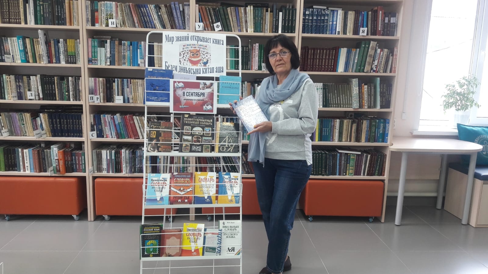 8 сентябрьдә Халыкара грамоталылык көне билгеләп үтелә. Безгә 1966 елда ЮНЕСКО инициативасы буенча беренче тапкыр килгән бу бәйрәм кешелек игътибарын хәзерге дөньяда грамоталылыкка юнәлтергә тиеш. Бу датага үзәк китапханә «Белем дөньясына китап аша» дип исемләнгән китап күргәзмәсе әзерләде, анда Рус теле буенча күнегүләр җыентыклары, орфографик һәм башка сүзлекләр тәкъдим ителде.