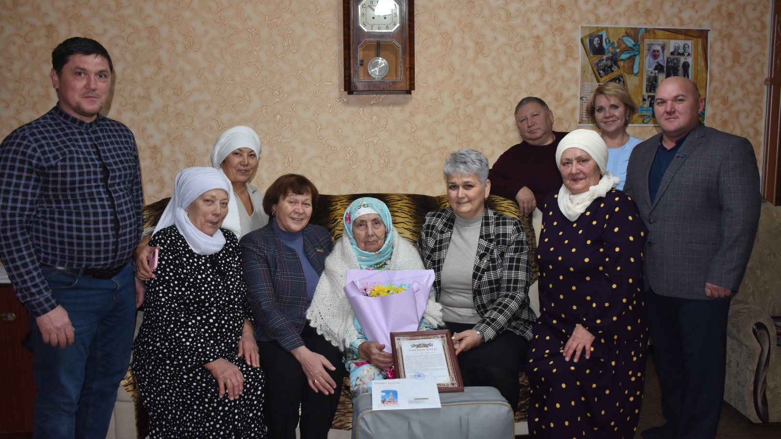 Алар Зәйтүнә апага Россия Федерациясе Президентының котлау открыткасын, район башлыгының Рәхмәт хатын, истәлек бүләкләре тапшырдылар, үзләренең иң җылы теләкләрен ирештерделәр.