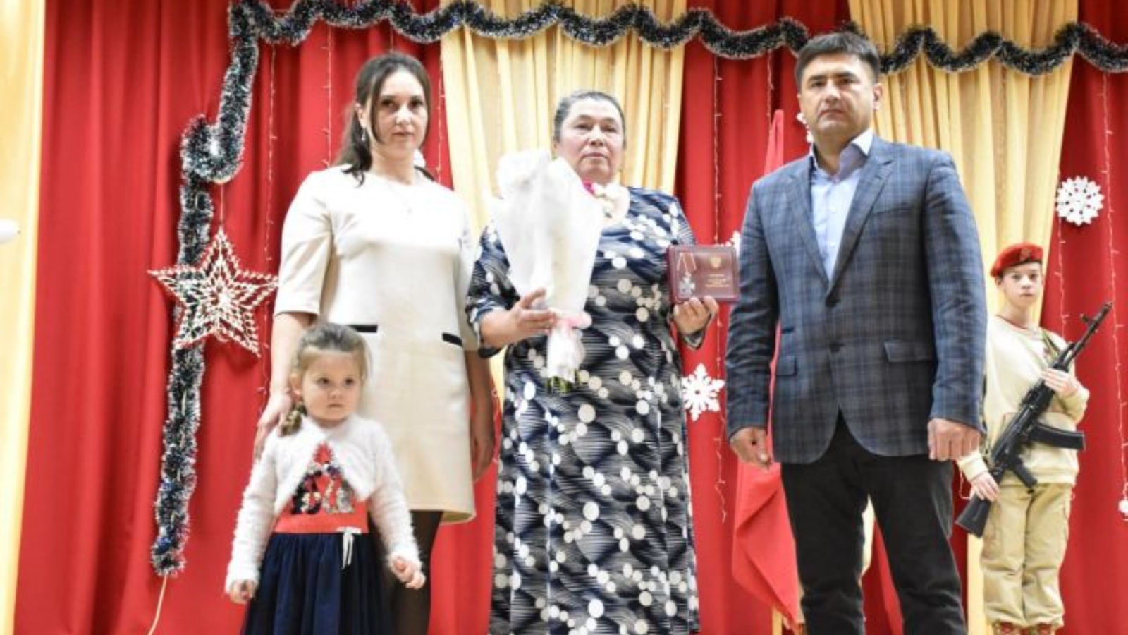 Кукмара районы башлыгы Сергей Димитриев мотоукчылар батальоны рядовое Ришат Хәлиуллинның гаиләсенә «Батырлык ордены» тапшырды.