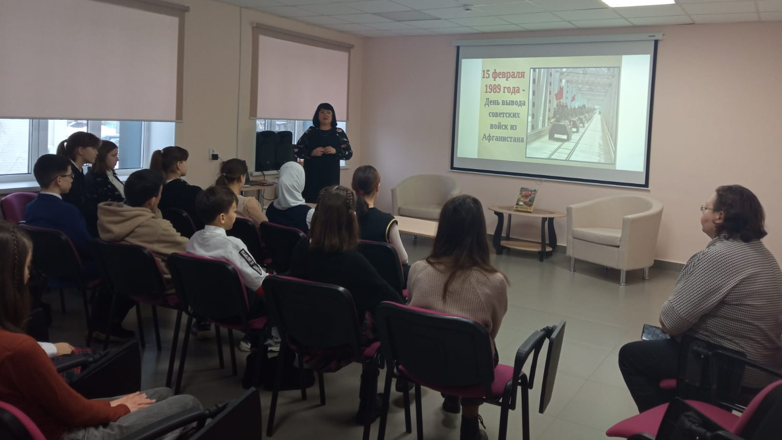 14 февраль көнне, сугышчы-интернационалистларны искә алу көне алдыннан, Үзәк китапханәнең баш китапханәчесе Гарипова Лилия Дамировна, Кукмараның 4нче урта мәктәбенең 8б сыйныф укучылары өчен (сыйныф җитәкчесе Галимуллина З.М.), «Әфган чүлләре буенча» исемле электрон презентация белән тематик сәгать әзерләде һәм үткәрде. Лилия Дамировна Әфган сугышы тарихы турында сөйләде, Татарстан Республикасы Кукмара районы сугышчы-интернационалистларына багышланган “Хәтергә лаеклы..." китабы белән таныштырды.