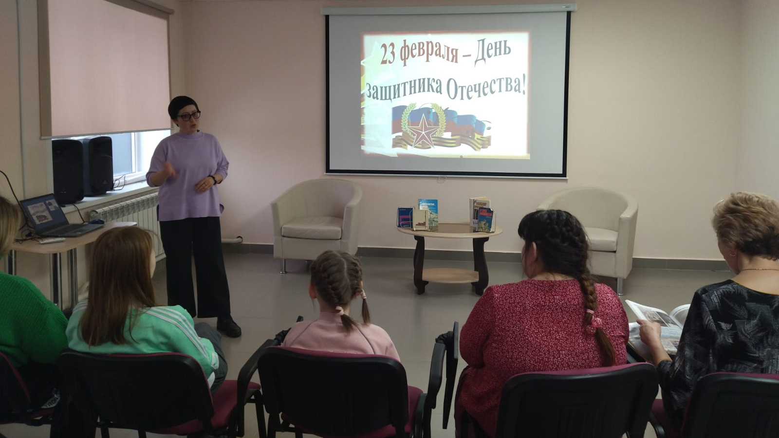 22 февральдә уку залы китапханәчесе Заһидуллина Г. Ф. «Мәрхәмәтлелек» тернәкләндерү үзәгендә реабилитация узучы балалар өчен «Солдатская смекалка»дигән викторина үткәрде. Чара барышында балалар армия тематикасы сорауларына актив җавап бирделәр, гаскәр төрләре турында белемнәрен арттырдылар, армиядә хезмәт итү турында мәкальләр һәм әйтемнәр төзеделәр.