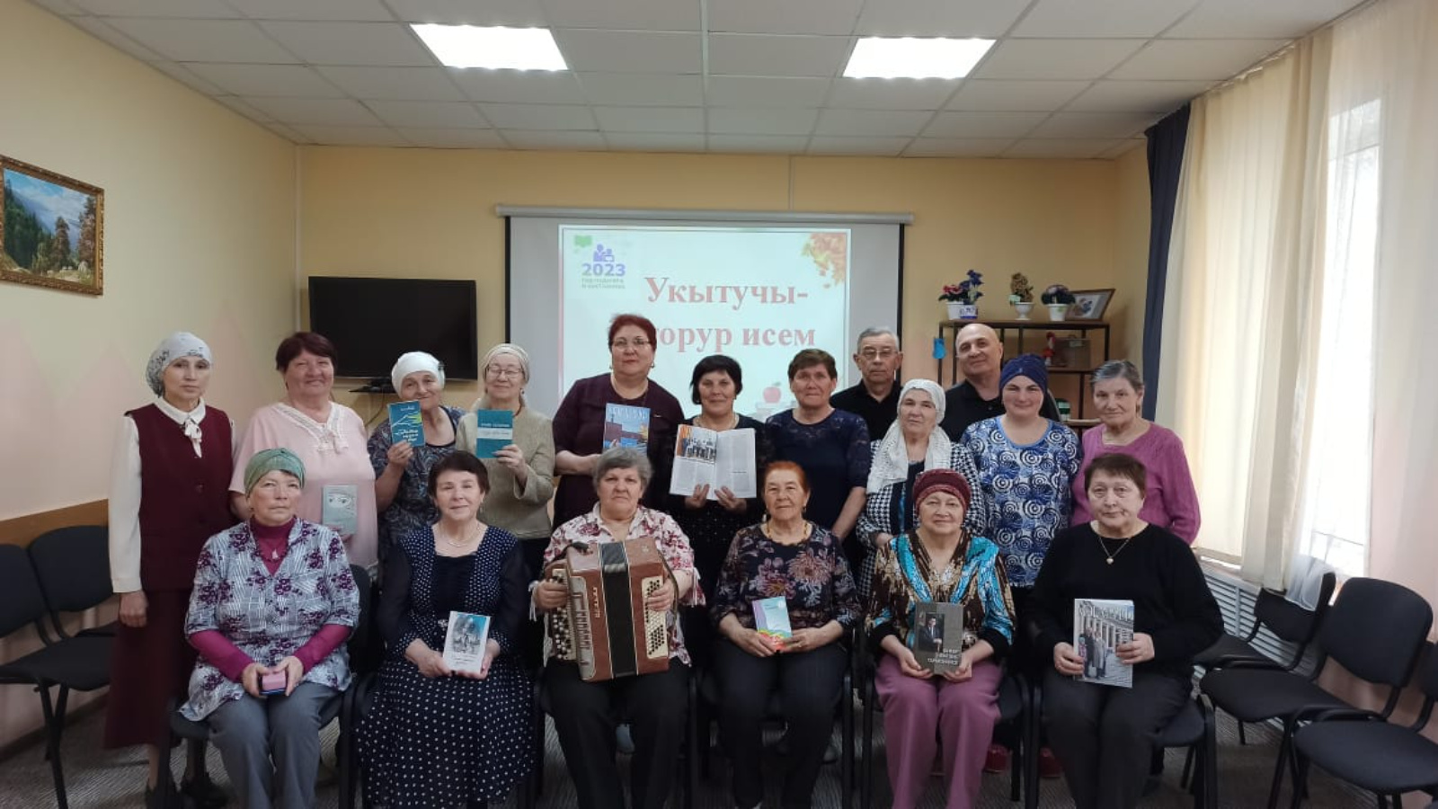 2023 нче ел- Россия буенча укытучылар һәм остазлар елы булып билгеләнде. Шул уңайдан 19 нчы апрель көнне уку залы китапханәчесе Сәлимова Т.Х. социаль ярдәм үзәге “НАЗ” да ял итүче пенсионерлар өчен “Укытучы-китап битләрендә” дип исемләнгән әдәби сәяхәт үткәрде. Китапханәче, зур сабырлык,түземлек сорый торган укытучы хезмәтенең кыйммәте турында әйтеп үтте. Татар әдәбиятында һәм рус әдәбиятында укытучылар хезмәтенә багышланган әсәрләр белән таныштырды.Чара барышында ял итүчеләр С.Әхмәтҗанова, К.Булатова, Э.Мөэминова, Ф.Яруллин шигырьләрен тыңладылар. Узләренең беренче укытучыларын зур хөрмәт белән искә алдылар. Биредә ял итүче Каменщикова Нина Фәнис Яруллинның укытучыларга багышланган “Иң гүзәл кеше икәнсез ” җырының көен гармунда уйнады, башкалар кушылып җырлады.