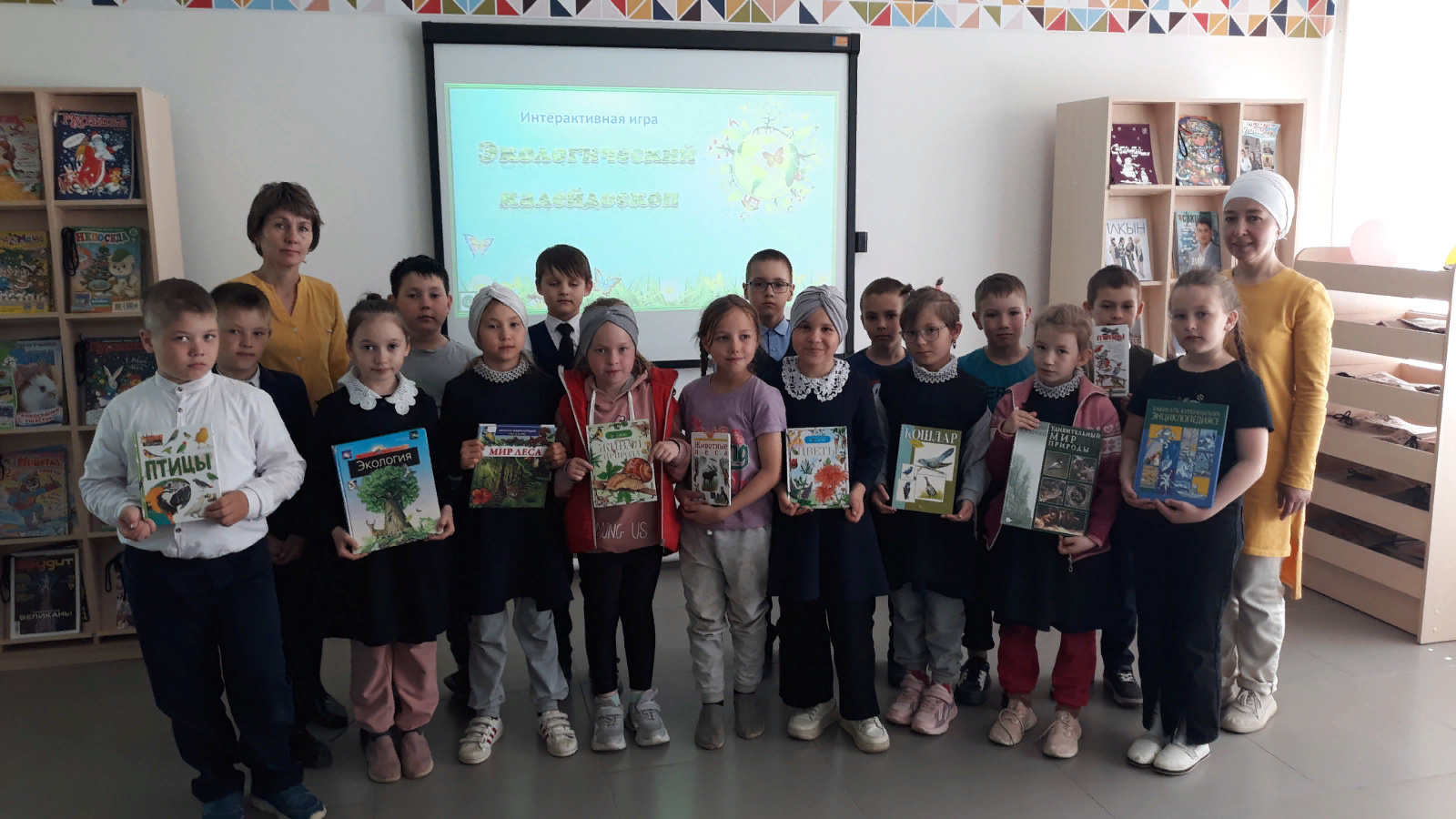 Бүген С.В.Михалков исемендәге үзәк балалар китапханәсендә Ч.Т. Айтматов исемендәге 1 нче гимназиянең 2б сыйныф укучылары өчен Рәмзия Гарифуллина «Экологик калейдоскоп» уенын үткәрде. Балалар экологиянең нәрсә икәнен, табигатьне һәм аның байлыкларын ничек сакларга кирәклеген белде, экологик кагыйдәләр белән танышты, конкурсларда һәм уеннарда актив катнашты. Чара китапларга күзәтү һәм табигатьне саклау турында мультфильм карау белән тәмамланды.