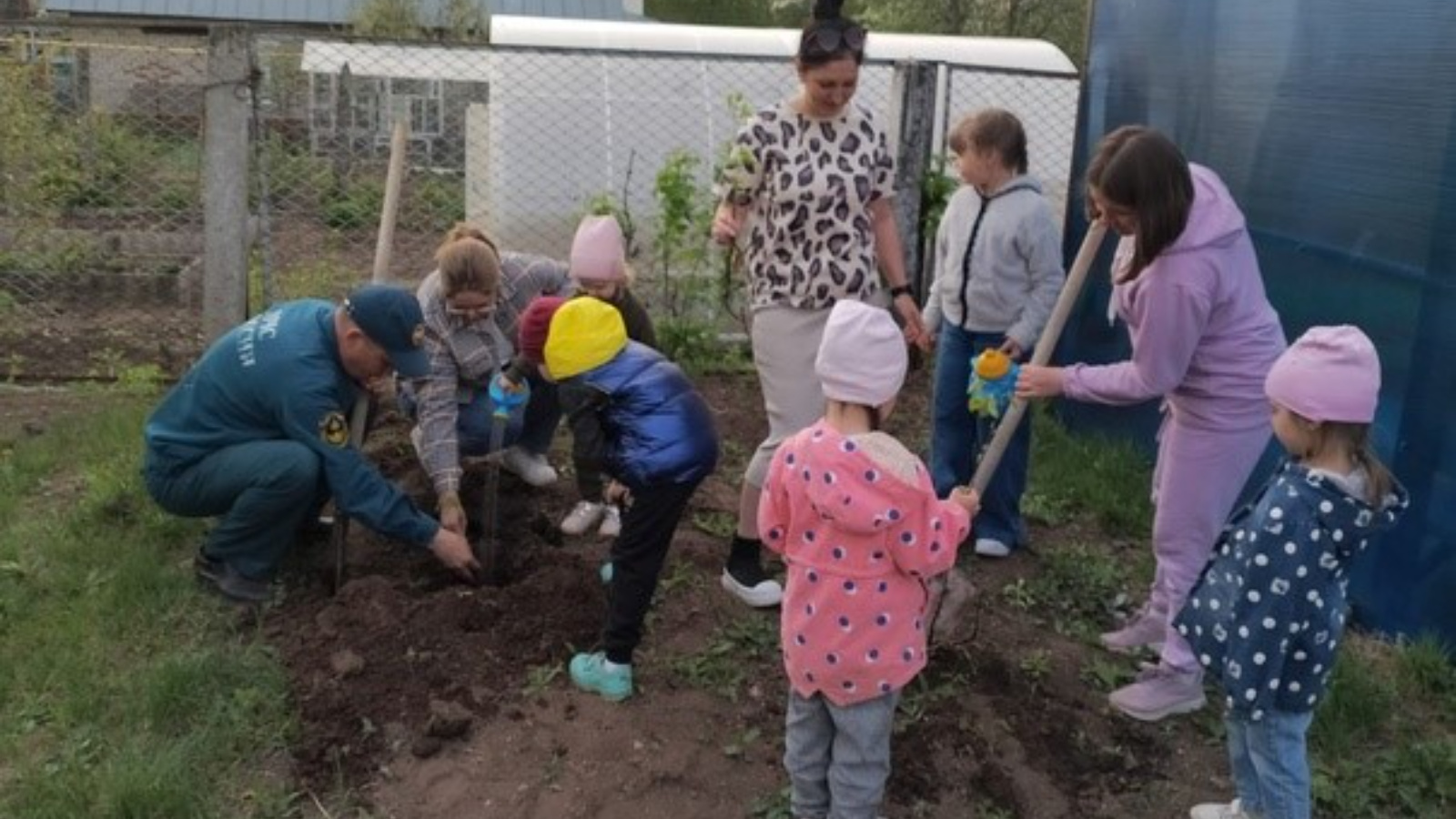 "ЭКОЯЗ-2023" республика акциясе кысаларында 14 май - Бөтенроссия агач утырту көне алдыннан тәрбияләнүчеләр әти - әниләре белән бергә балалар бакчасы территориясендә агачлар һәм куаклар утырттылар. #ЭКОЯЗ2023