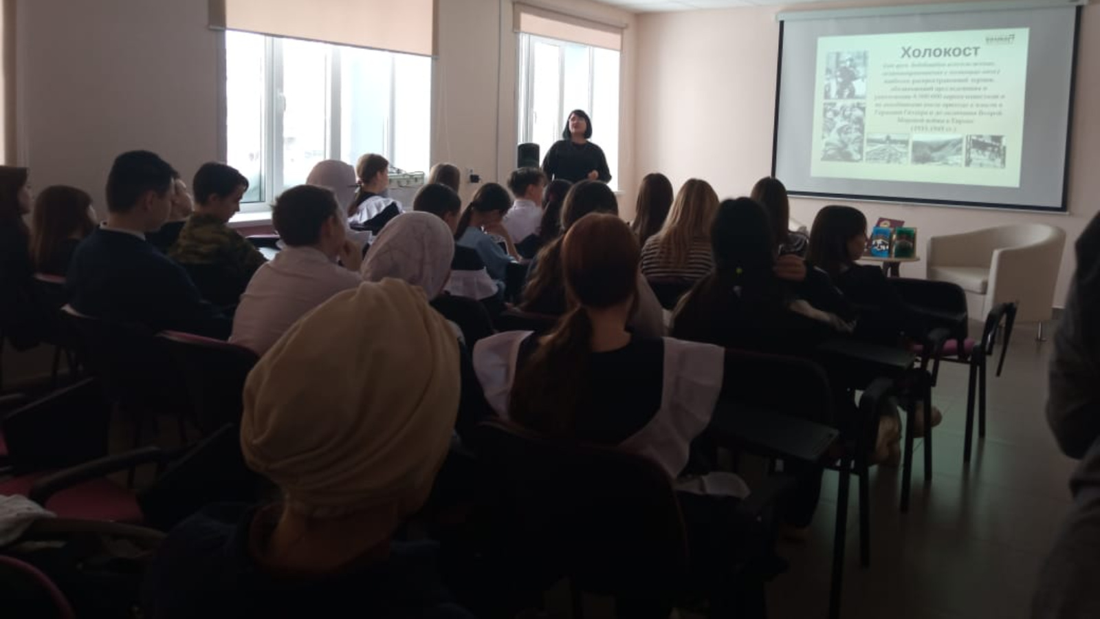 26 гыйнвар - Халыкара Холокост корбаннарын искә алу көне. Әлеге истәлекле дата алдыннан, үзәк китапханә китапханәчесе Гарипова Л. Д., Ч.Т. Айтматов исемендәге гимназияның 8нче б сыйныф укучылары өчен, «Холокост - кешелек афәте» дип исемләнгән хәтер сәгате үткәрде. Лилия Дамир кызы укучыларны Холокост фаҗигасе белән бәйле төп төшенчәләр белән таныштырды. Фашизмның күпсанлы корбаннары, яһүд халкының рәхимсез юк ителүе турында сөйләде.