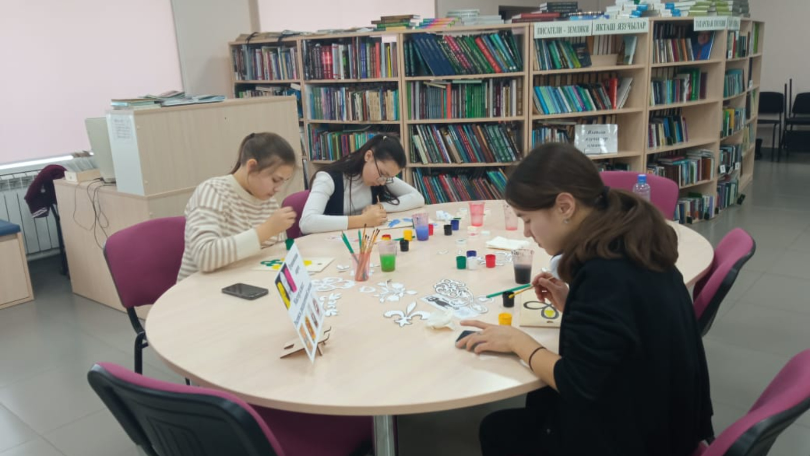 8 февраль көнне, "Пушкин картасы" проекты кысаларында, Үзәк китапханәдә, укучылар өчен татар орнаменты белән куна тактасын буяу буенча мастер-класс үтте.
