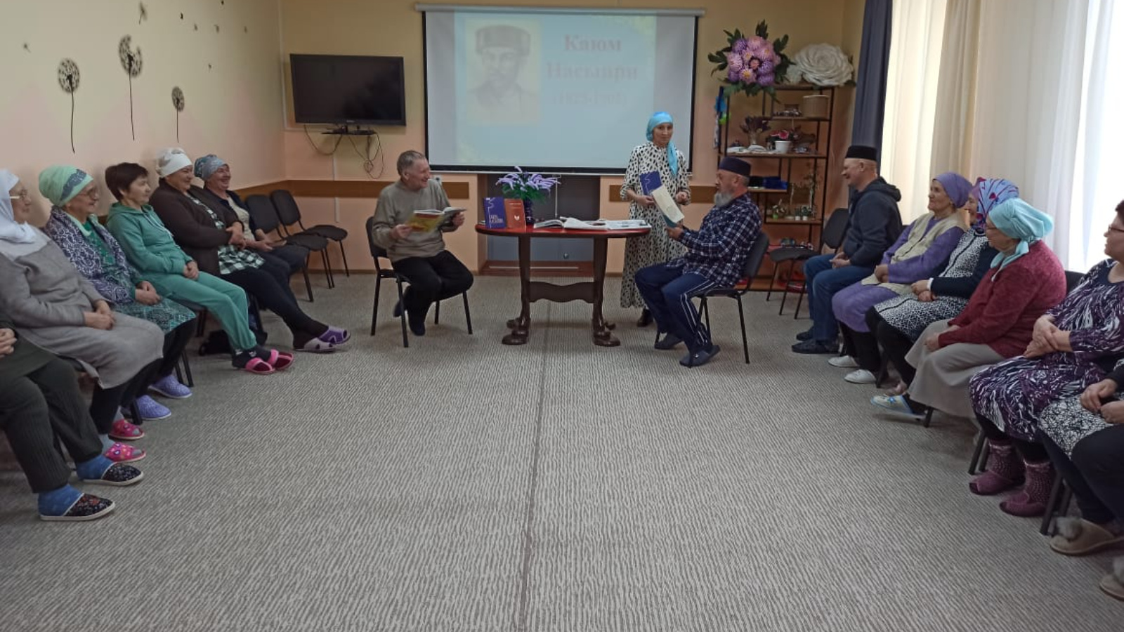 14 февраль көнне уку залы китапханәчесе Сәлимова Т.Х., социаль ярдәм үзәге “НАЗ” да ял итүче пенсионерлар өчен, мәгърифәтче,тарихчы,этнограф,тел белгече һәм әдип Каюм (Габделкаюм) Габденнасыйр улы Насыйри иҗатына багышланган “Каюм Насыйри хезмәтләрендә хикмәтле сүзләр” дип исемләнгән әдәби кичә үткәрде.Китапханәче олуг мәгрифәтченең тормыш юлы,иҗаты белән таныштырып үтте. Чара барышында ял итүчеләр әдипнең төрле фәннәргә багышланган хезмәтләре белән танышып үттеләр Әлеге чара ахырында китапханәче Каюм Насыйриның иҗаты турында “Мәдәни җомга”, “Шәхри Казан” газетасы, “Идел” җурналы битләрендә басылып чыккан мәкаләләргә күзәтү ясады.