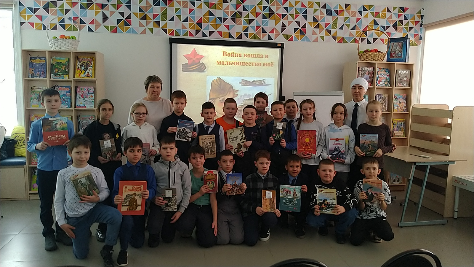 Ватанны саклаучылар елы кысаларында С.В.Михалков исемендәге үзәк балалар китапханәсендә күп профильле лицейның 3Б сыйныфы укучылары өчен Гарифуллина Рәмзия «Сугыш урлаган балалык» дигән батырлык дәресе үткәрде. Балалар герой-пионерлар Леня Голиков, Марат Казей, Зина Портнова, Лара Михеенко һәм Бөек Ватан сугышы елларында үз гомерләрен биргән башка пионерларның батырлыклары белән танышты. Өлкәннәр белән беррәттән алар разведкага йөри, мөһим мәгълүматлар алып кайта, дошман поездлары, машиналар, күперләр, складлар шартлата. Аларның һәр батырлыгын Ватан орденнар һәм медальләр белән бәяләде. Чарада балалар сәнгать мәктәбенең «Юные сорванцы театры» һәм «Фантазеры» театр студиясе укучылары (укытучылары Хәбибуллина Д.Р., Бурцева С.В.) «Ленинград камалышы балалары» дигән күренешне сәхнәләштерделәр. Чара китапларга күзәтү белән тәмамланды.