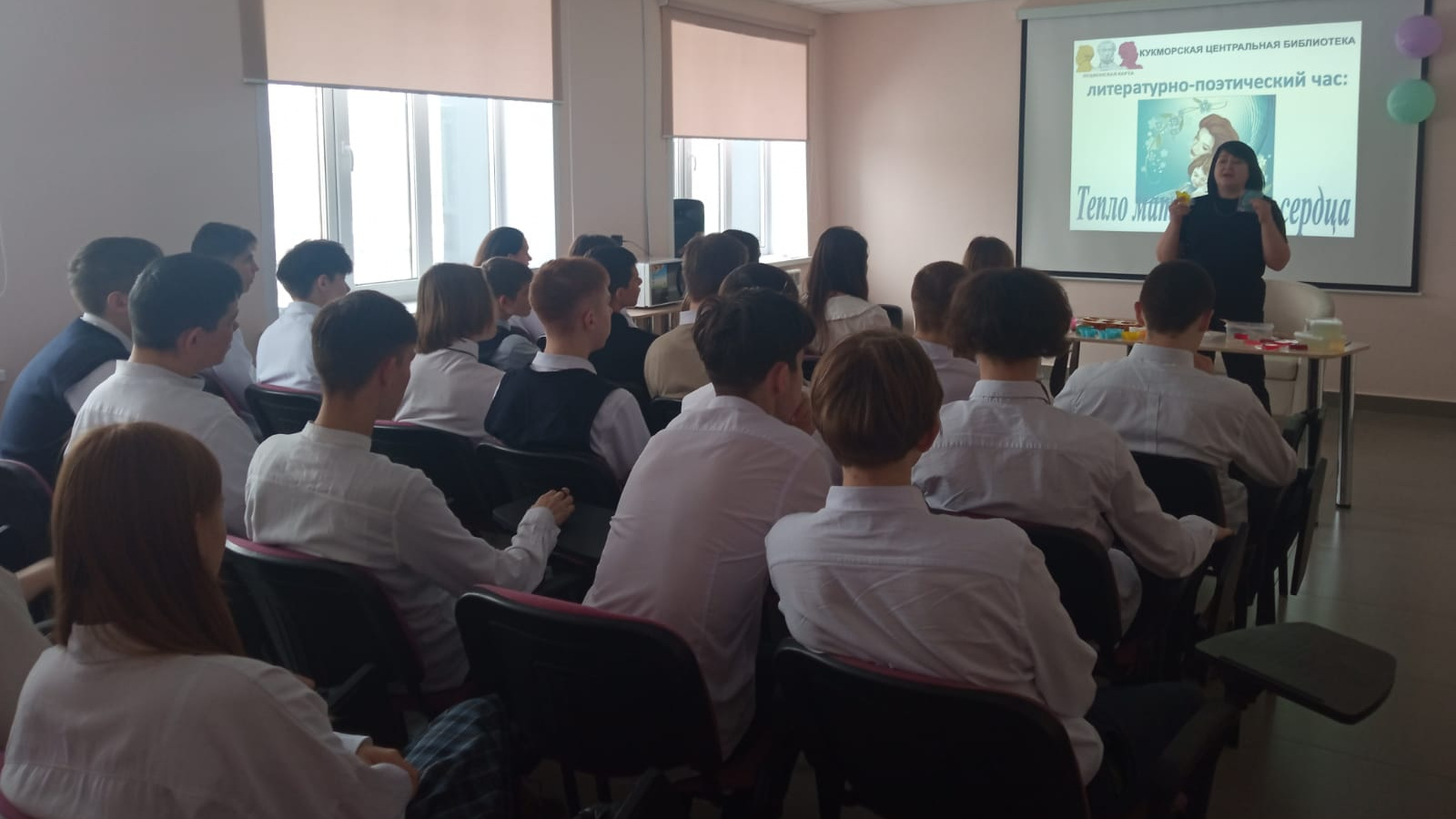 4 март көнне «Пушкин картасы» проекты кысаларында хезмәт күрсәтү бүлеге китапханәчесе Гарипова Л.Д. 4нче урта мәктәпнең 9 «б» сыйныфы укучылары өчен «Ана йөрәге җылысы» дигән әдәби-шигъри сәгать үткәрде.