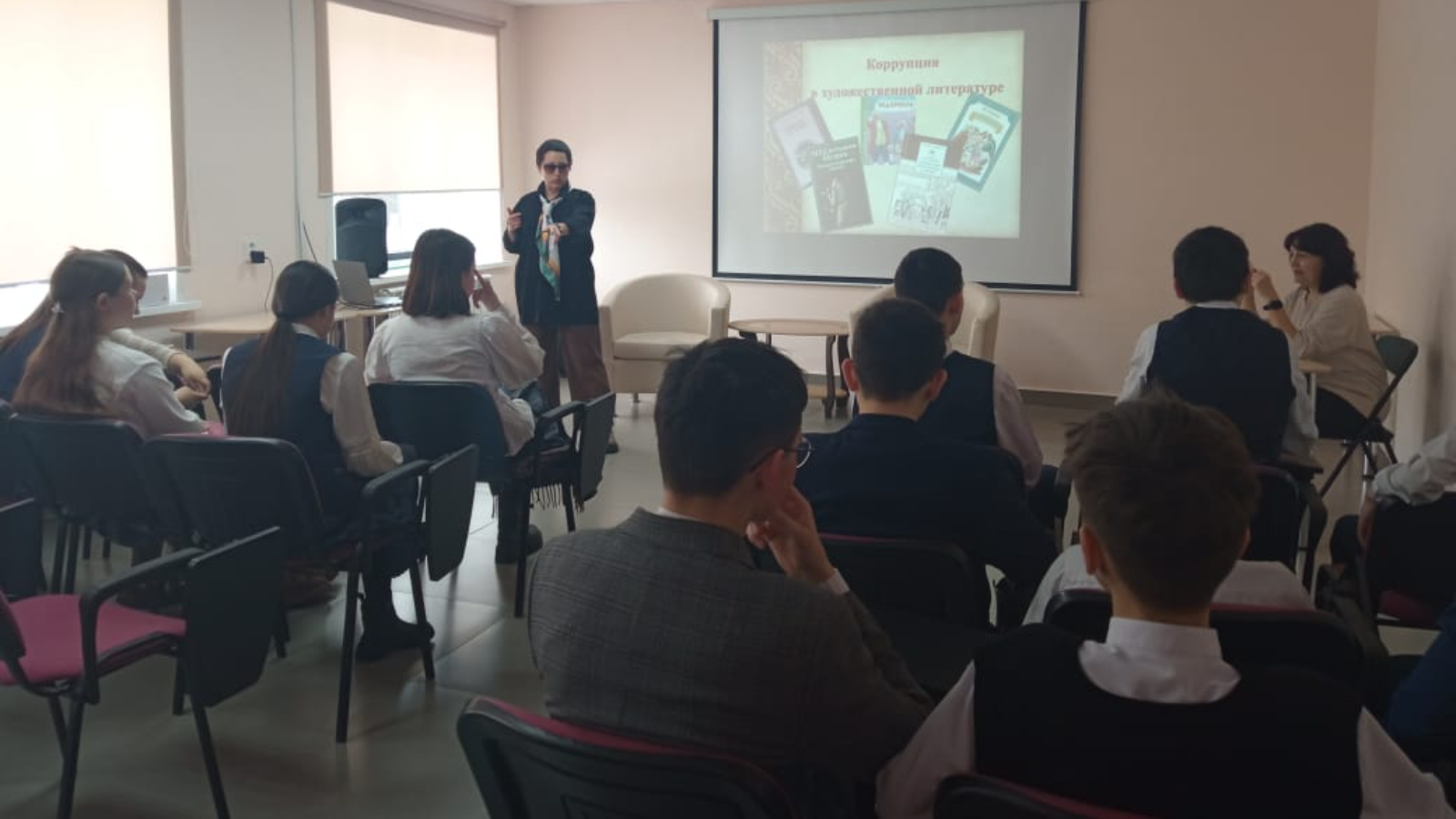 2 апрельдә Ч.Т. Айтматов исемендәге №1 гимназияның 8 «б» сыйныф укучылары өчен, уку залы китапханәчесе Заһидуллина Г., “Язучылар коррупциягә каршы» дигән мәгълүмат сәгате үткәрде. Чарада катнашучыларга А.П. Чехов, Н.В. Гоголь, М. Е. Салтыков-Щедрин, М. Зощенко, А. С. Грибоедов, А. С. Пушкин әсәрләрендә ачылган ришвәтчелек һәм казна урлау турындагы китаплар тәкъдим ителде. Китапханәче аңлаешлы формада коррупциянең барлыкка килү тарихы, аның әһәмияте һәм аңа каршы көрәш ысуллары турында сөйләде.