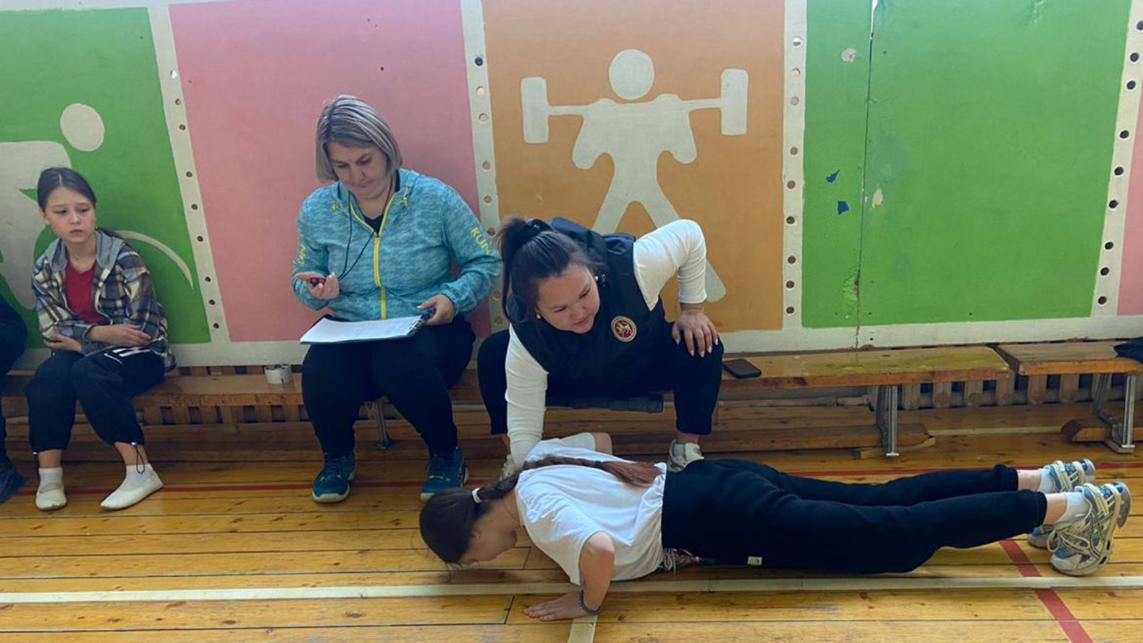 Спартакиада кысаларында гомуми белем мәктәпләре укучылары 6 майда ВФСК ГТО тапшыруында катнаштылар, тартылу, утыру һәм отжимание кебек күнегүләр ясадылар.