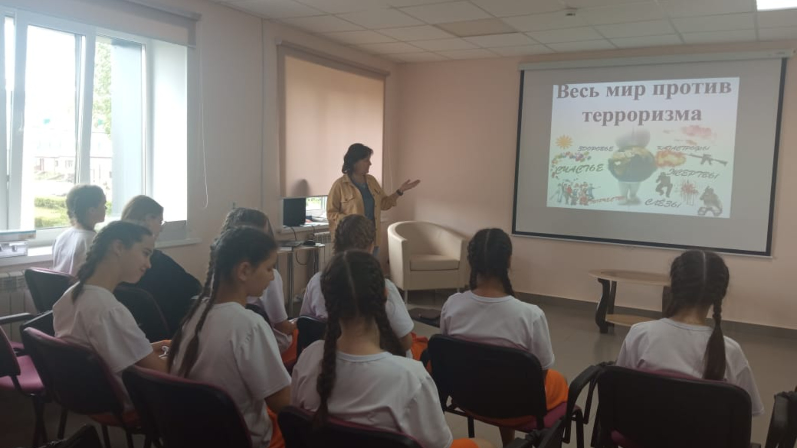 4 июль көнне китапханәнең яшь укучыларга хезмәт күрсәтү бүлеге китапханәчесе: «Бөтен дөнья террорчылыкка каршы» дигән мәгълүмат сәгате үткәрде.