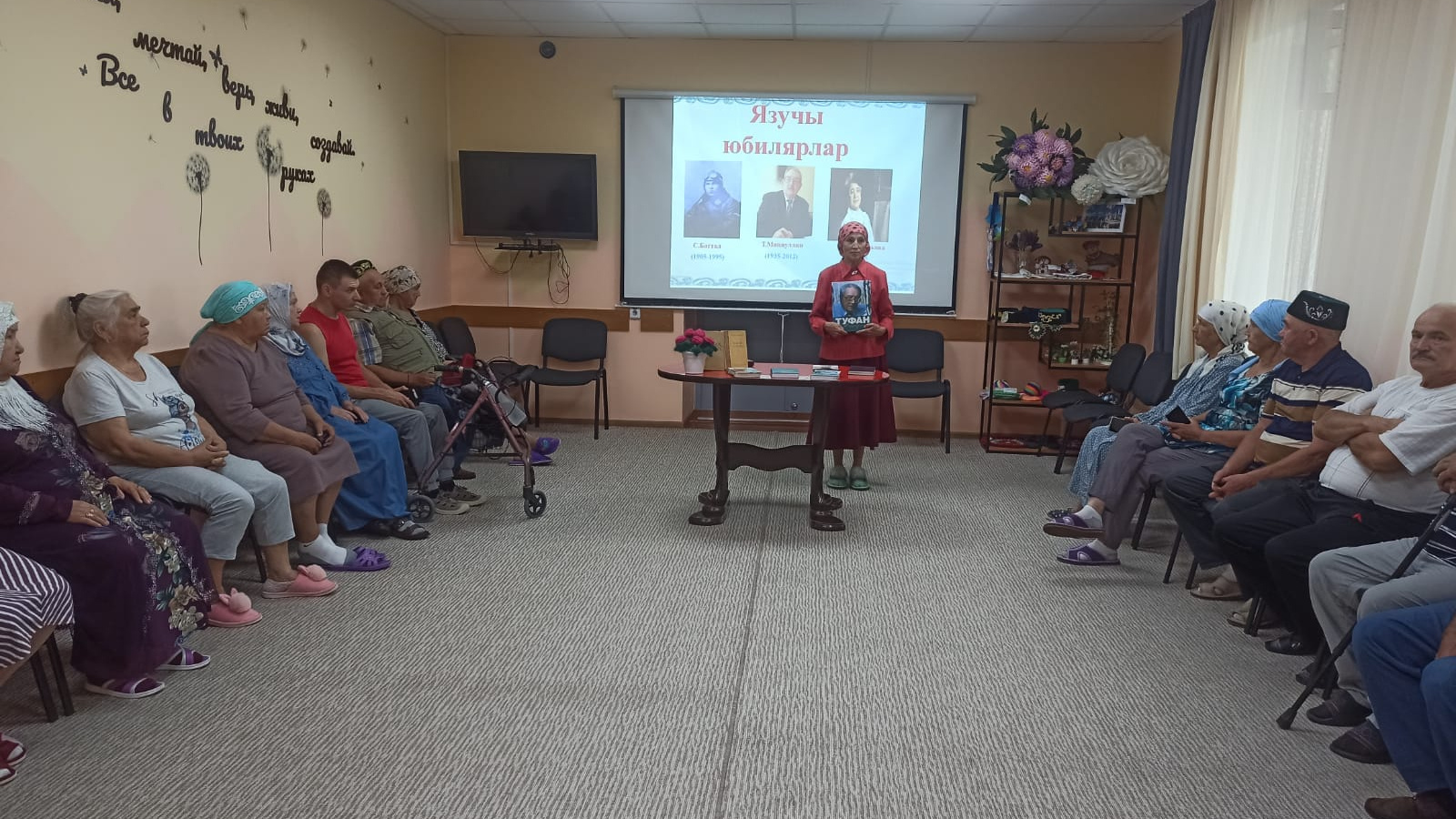 6 август көнне уку залы китапханәчесе Сәлимова Т.Х., социаль ярдәм үзәге “НАЗ” да ял итүче пенсионерлар өчен «Август аеның язучы юбилярлары» дигән әдәби сәгать үткәрде.