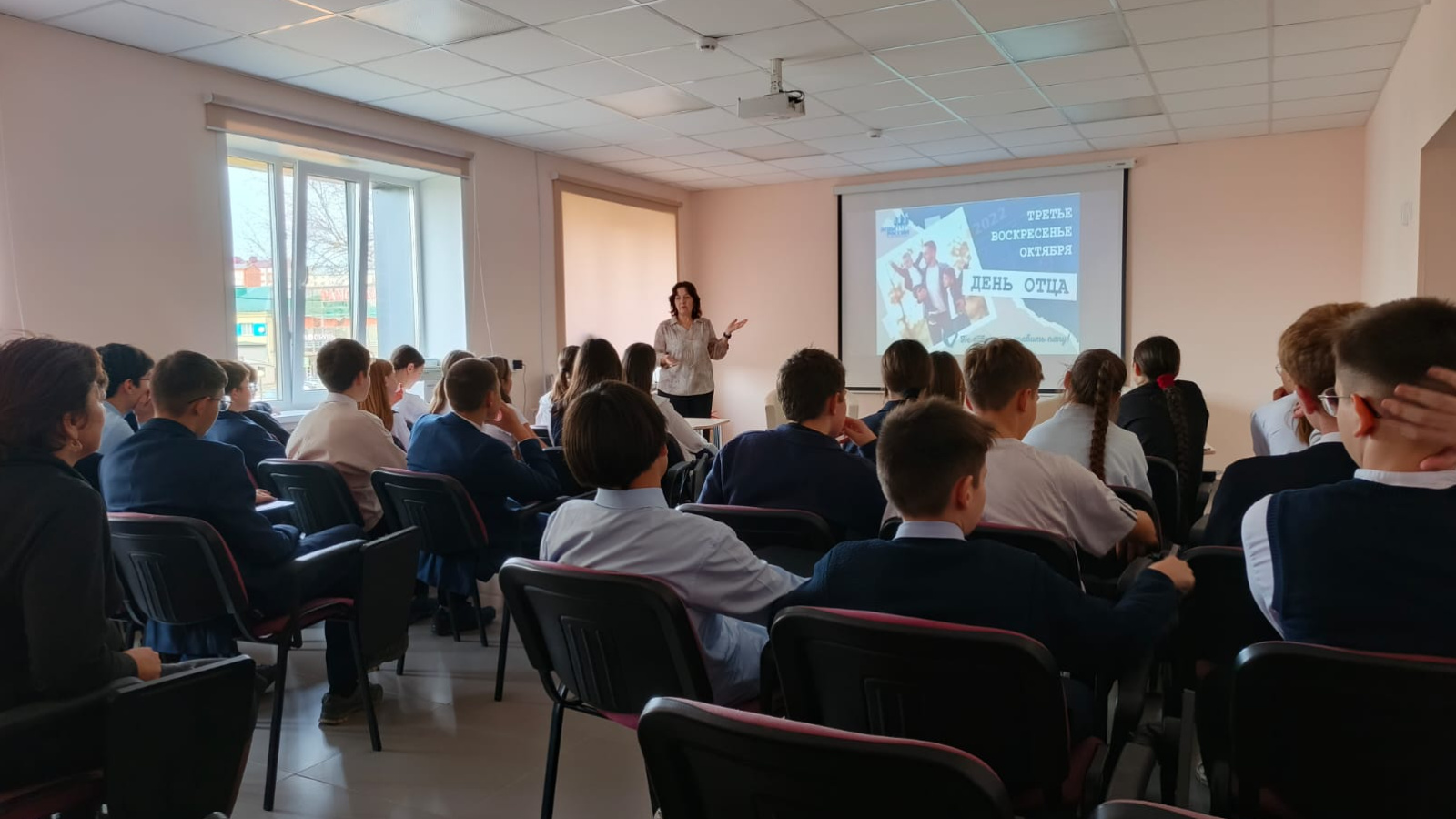 Әтиләр көне алдыннан, хезмәт күрсәтү бүлеге хезмәткәре В.Г. Пахомова, 4 нче урта мәктәпнең 8 "Б" сыйныфы укучылары өчен «Әти – гаилә терәге» дигән тематик сәгать үткәрде. Чара хәзерге җәмгыятьтә атаның роле турында фикер алышудан башланды. В.Г. Пахомова ассызыклаганча, әти – ул табыш алучы һәм яклаучы гына түгел, ә дус, остаз һәм үрнәк тә. Атадан улына тапшырыла торган традицияләр һәм кыйммәтләр, шулай ук баланың шәхесен формалаштыруда ата мәхәббәтенең һәм ярдәменең әһәмияте турында фикер алыштылар. Укучылар әтиләре турында хикәяләре белән уртаклаштылар, аларның мавыгулары, казанышлары һәм акыллы киңәшләре турында сөйләделәр.