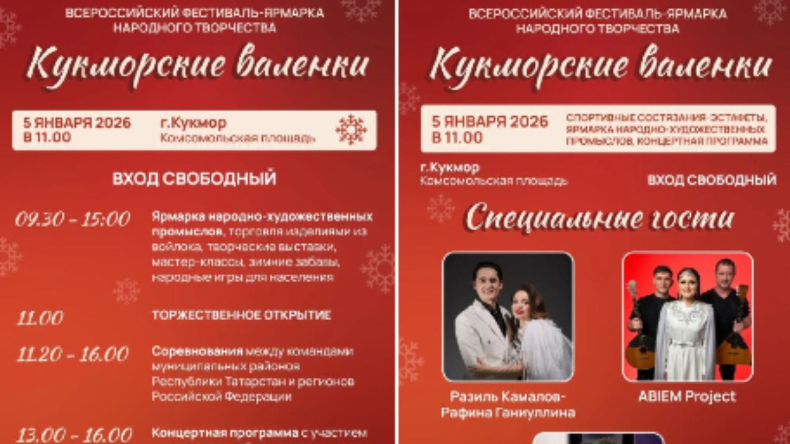 5 гыйнварда Кукмараның Комсомол мәйданында «Кукмара итекләре» Бөтенроссия халык иҗаты фестиваль-ярминкәсе узачак.