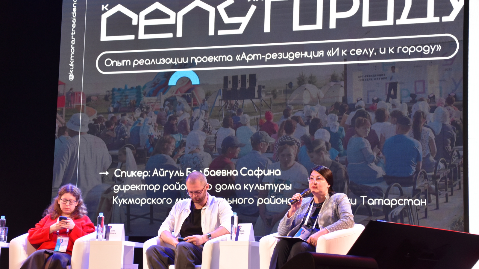 Кукмара район мәдәният йорты директоры Айгөл Сафина һәм Татарстан Республикасы Мәдәният министрлыгының «Таткультресурсцентр» ДБУ фестиваль һәм конкурс программалары бүлеге мөдире, Кукмара район мәдәният йорты методисты Нияз Каримуллин «Тропа ЛОКАЛЬНО, НО НАЦИОНАЛЬНО» дигән тематик мәйданчыкта чыгыш ясады. Алар «Арт-резиденция «И к селу, и к городу» проектын тормышка ашыру тәҗрибәсе белән уртаклашты. Шул ук урында киләчәкнең халык мәдәниятен үстерү турында ачык әңгәмә дә оештырылды.