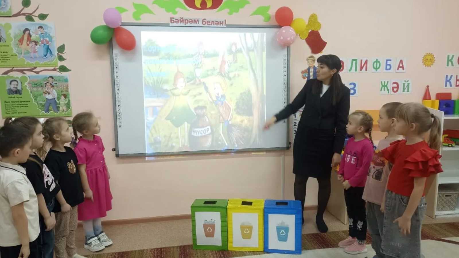 Бөтенроссия "эколят көне" кысаларында безнең балалар бакчасында бу атнада «чүп - чарны сортларга аерабыз-табигатьне саклыйбыз»дигән дәресләр үткәрелде. Балалар чүп-чарны аерым җыюның файдасы белән таныштылар, экологик мәсьәләләрне хәл иттеләр, Экологик әкиятләр тыңладылар. Балалар шулай ук карарга, үсемлекләргә су сибәргә, балалар бакчасы төркемендә булырга, эре үсемлекләрне дымлы чүпрәк белән сөртергә, суган утыртырга, туфракны йомшартырга һәм яфракларны сиптерергә яраталар. Безнең мәктәпкәчә яшьтәге балалар чын табигать сакчылары булырга әзер. Балаларның алда бик күп кызыклы эшләре бар: табигатьне саклау акцияләрендә, иҗади остаханәләрдә, викториналарда һәм конкурсларда катнашу.