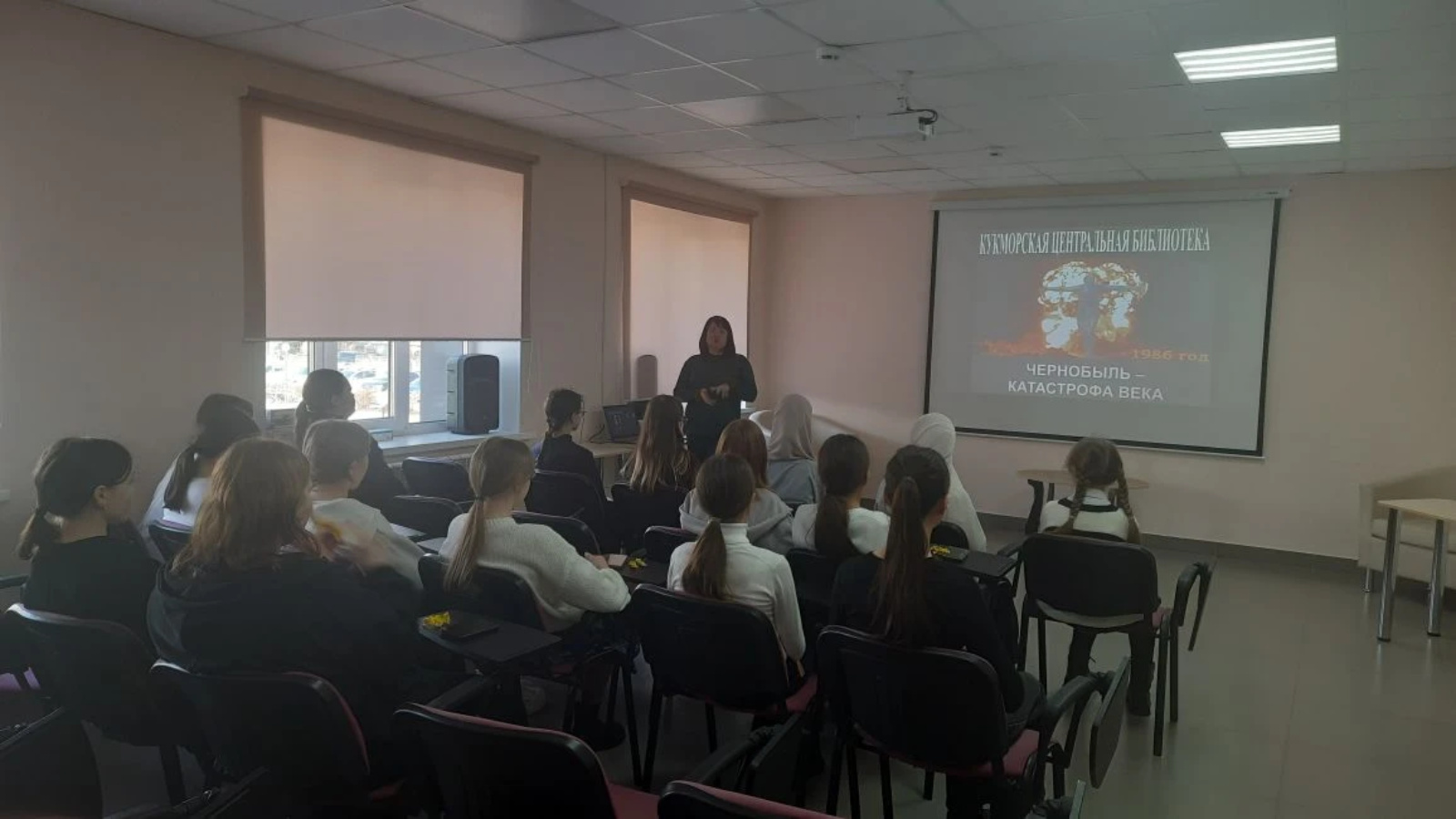 24 апрельдә Үзәк китапханәнең хезмәт күрсәтү бүлеге китапханәчесе Гарипова Л.Д. , Ч.Т.Айтматов исемендәге 1 нче гимназия укучылары өчен «Чернобыль фаҗигасе» дип исемләнгән мәгълүмат сәгате үткәрде. Чара барышында Лилия Дамировна һәлакәтнең масштабы, авария урынында радиация зарарлануларын бетерү буенча волонтерларның эше, радиациядән зыян күргән кешеләр һәм аларның язмышлары турында сөйләде.